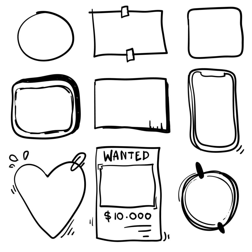 Hand drawn set of simple frame and border with different shapes, heart, square, oval. Cut isolated vector illustration for your banner design vector illustration Pro Vector