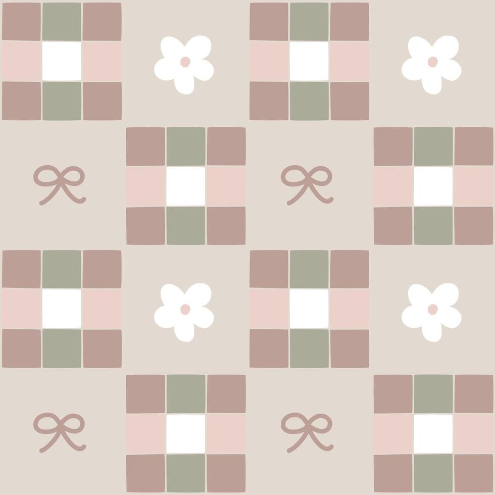 seamless minimal flower and ribbon repeat pattern in beige background Pro Vector