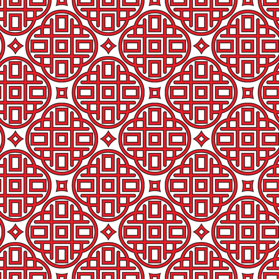 Intricate Red and White Eastern Chinese Geometric Pattern with Interlocking Circles and Rectangles vector