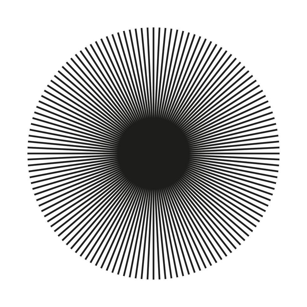 Radial circle lines backdrop. Circular black lines element. Symbol of Sun star rays. Flat design trendy pattern. Spokes with radiating stripes. Abstract round geometric shape. Pro Vector