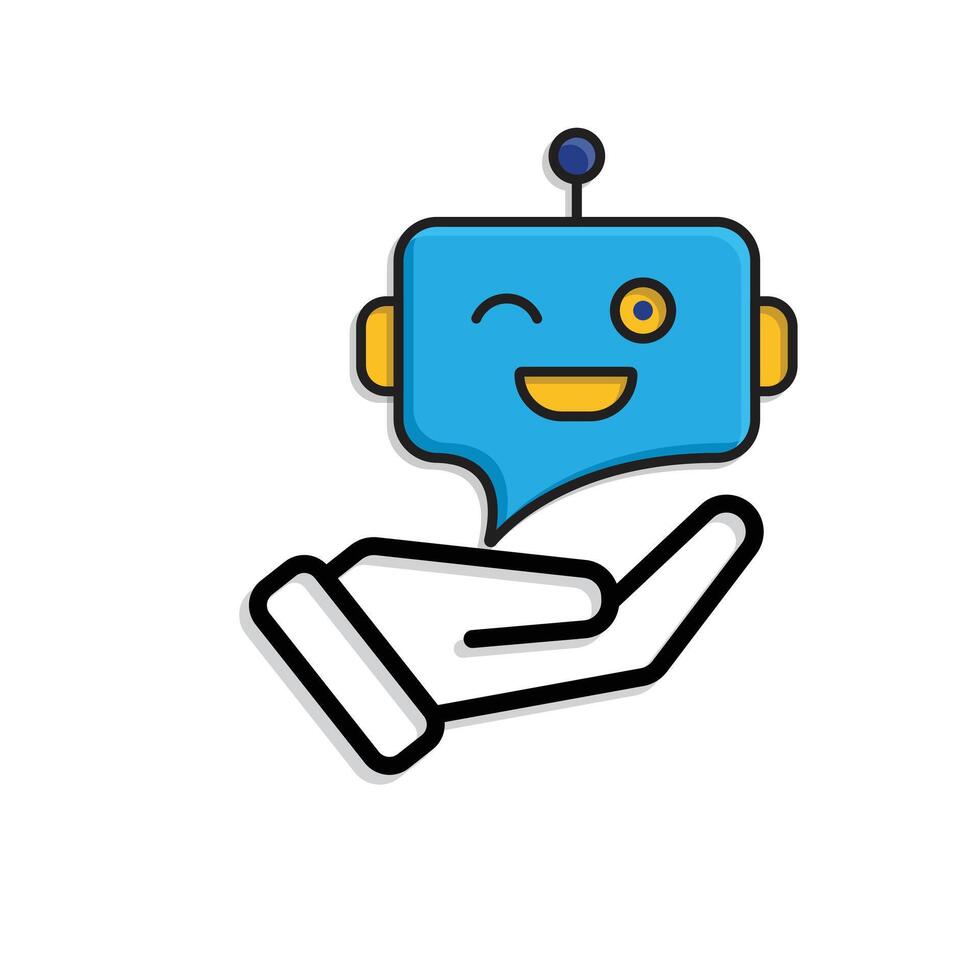 ai icon. AI Personal Assistant in hand. Chatbot avatar. Friendly robot face with chat bubble. UI, education. Mixed design style Pro Vector