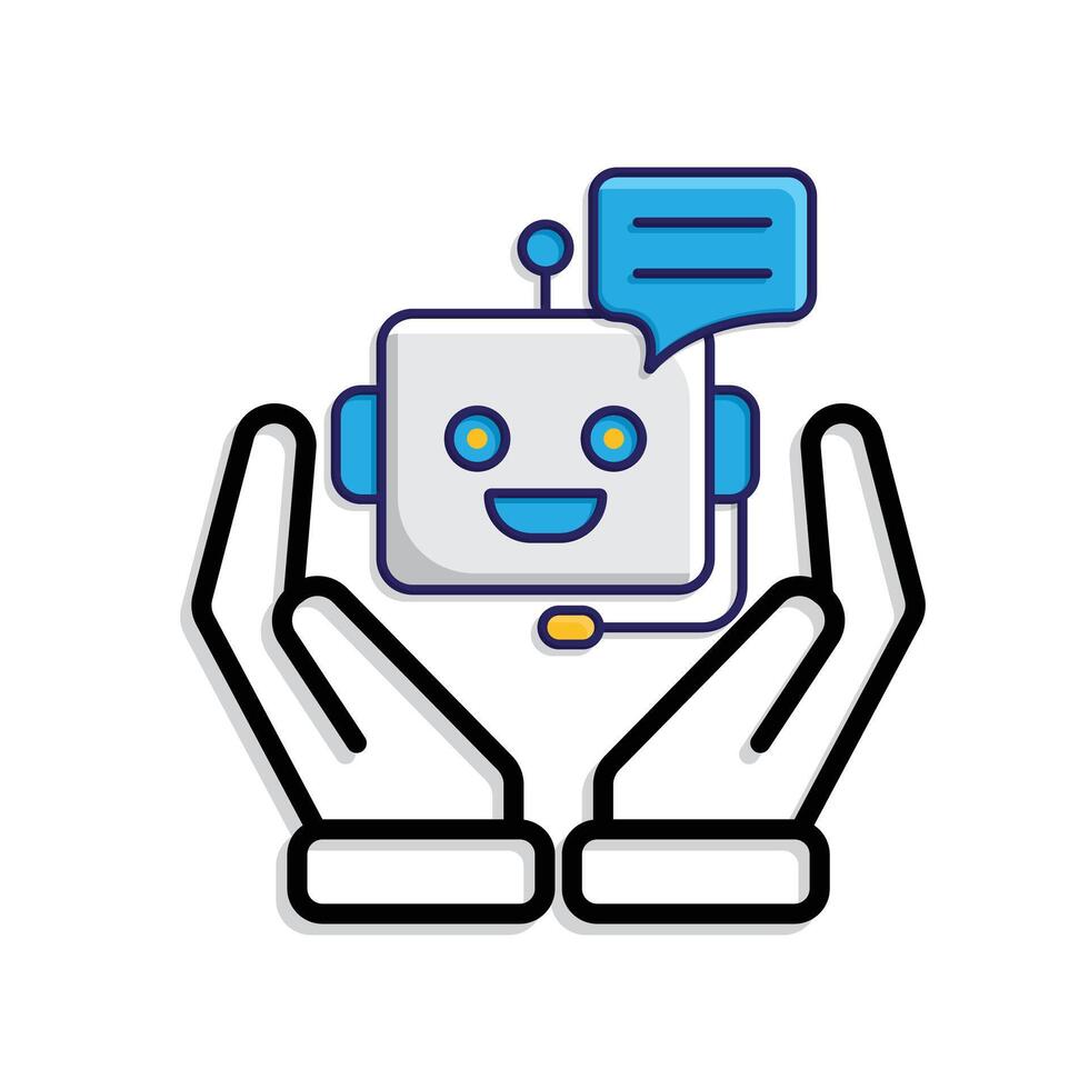 ai icon. AI Personal Assistant in two hand. Voice assistant. microphone with bot face. UI, education. Mixed design style Pro Vector