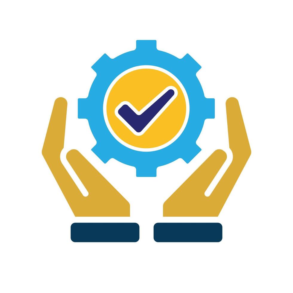 ai icon. AI Personal Assistant in two hand. Task automation. Gear moving with automatic checklist. UI, education. Flat design style Pro Vector