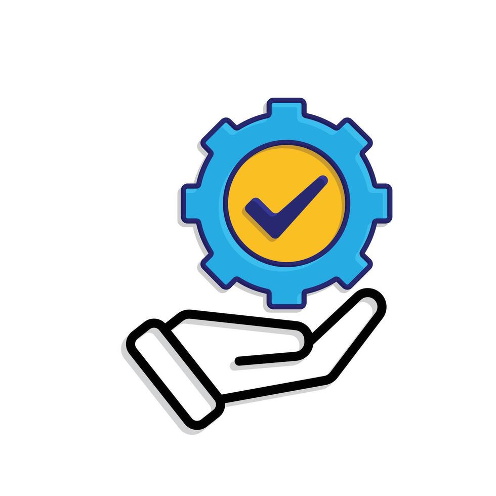 ai icon. AI Personal Assistant in hand. Task automation. Gear moving with automatic checklist. UI, education. Mixed design style Pro Vector