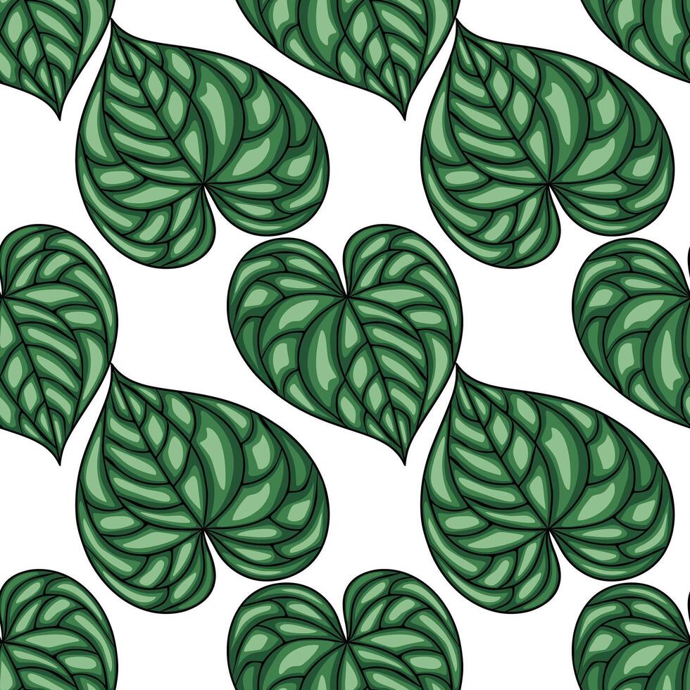 Seamless pattern of stylized heart-shaped leaves in dark green shades, creating a lush and textured botanical design perfect for various applications. Pro Vector