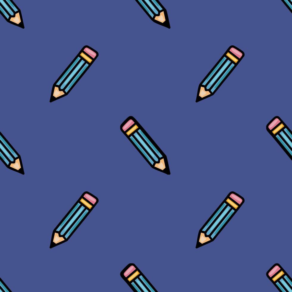 A vibrant seamless pattern featuring a playful arrangement of teal pencils with pink erasers against a deep blue backdrop, creating a cheerful and educational design. Pro Vector