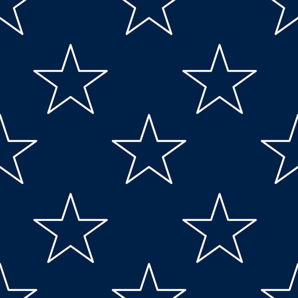 A seamless pattern featuring white outlined stars on a dark blue background, creating a modern and stylish design suitable for various applications. Pro Vector