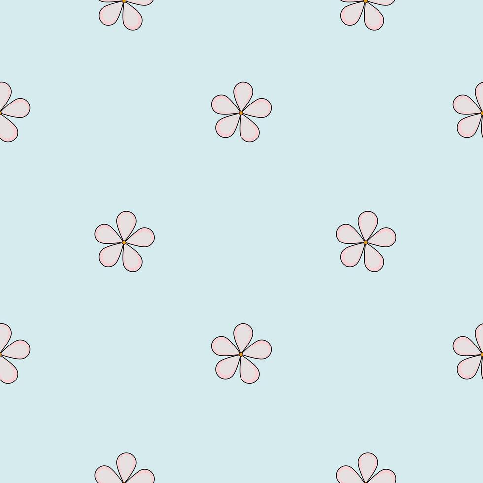 A seamless pattern featuring small, outlined flower shapes in a light pastel blue background. The flowers are simple and symmetrical, creating a delicate and charming design. Pro Vector