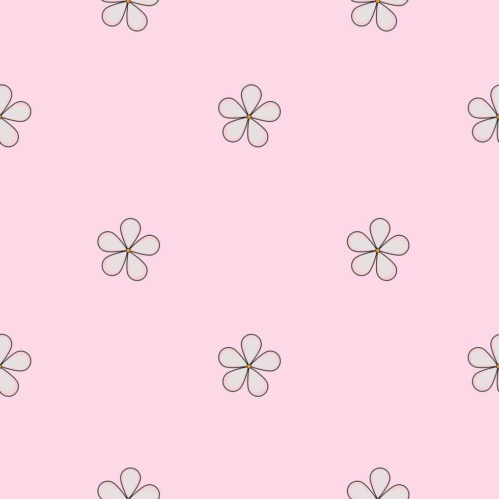 A seamless pattern featuring small, outlined flowers on a soft pink background. The flowers have a simple, minimalist design with rounded petals and a delicate appearance. Pro Vector