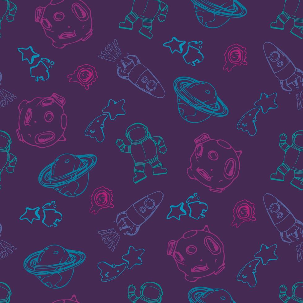 Space seamless pattern print design for kids with cosmic elements, rockets, tars, planets, spaceships. design for fashion fabrics, textile graphics, prints. Hand drawn solar system. Pro Vector