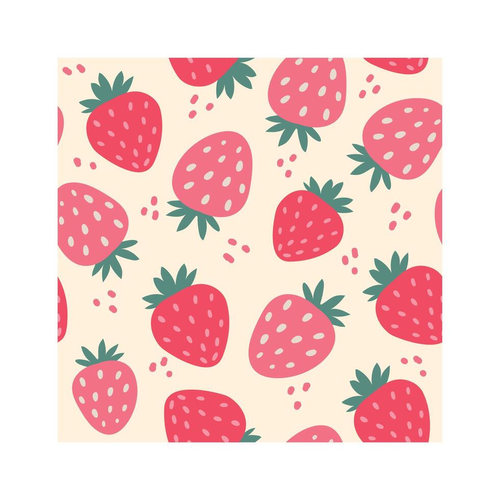 Seamless pattern featuring stylized strawberries in shades of pink and red, scattered across a cream background, creating a cheerful and vibrant design suitable for various applications Pro Vector