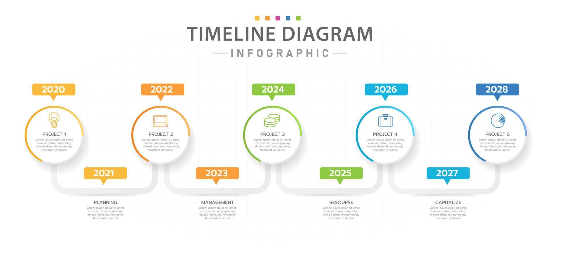 Infographic template for business. 5 Modern Project Timeline diagram with yearly roadmap, presentation vector infographic. Pro Vector
