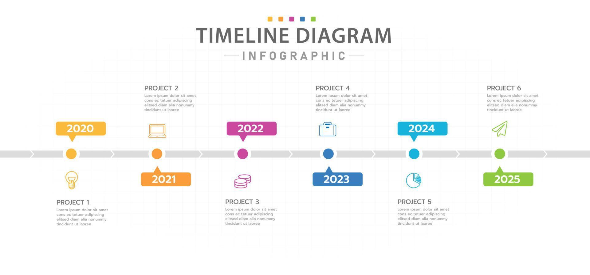 Infographic template for business. 6 Year Steps Modern Timeline diagram with line graph, presentation vector infographic. Pro Vector