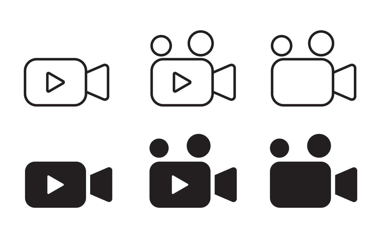 camera icons set. movie sign. Play button on camera icon. camera symbol. camera icon for streaming. Pro Vector