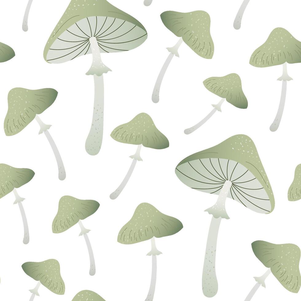 minimal seamless pattern with green forest mushrooms. Soft textured shapes on white background create cozy woodland atmosphere Design for autumn card, textile, wrapping papper or natural print Pro Vector