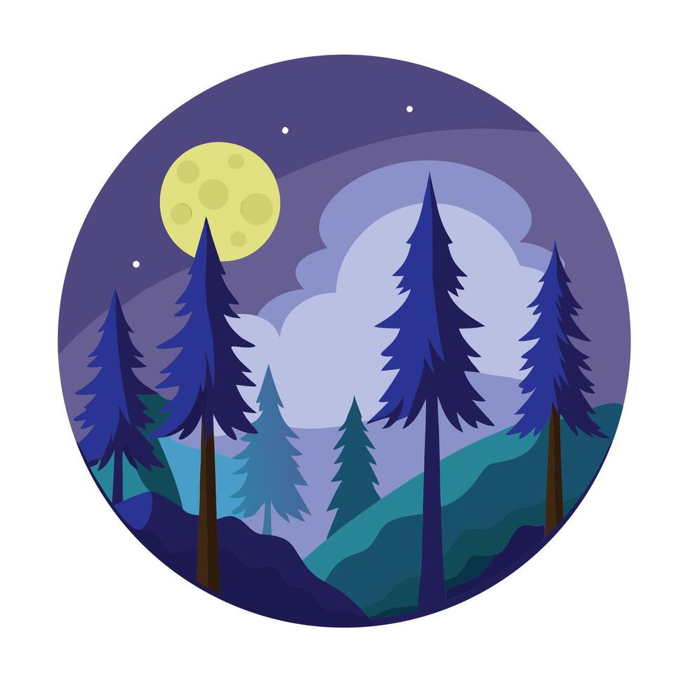 Flat Design Landscape with Trees Moon and Clouds Ideal for Web or Print Pro Vector