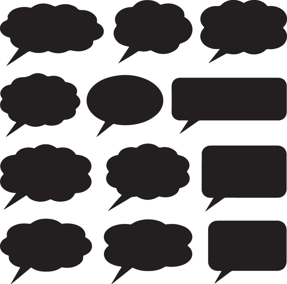 Twelve Black Speech Bubbles Set Irregular Shapes Cloud Oval Rectangle Forms Communication Graphic Design Elements Pro Vector
