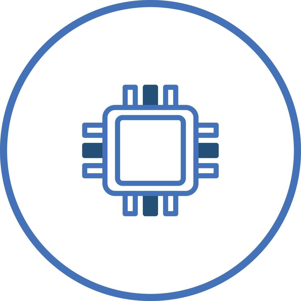 Simple microchip illustration in a circle depicting modern technology and computer science applications and development vector