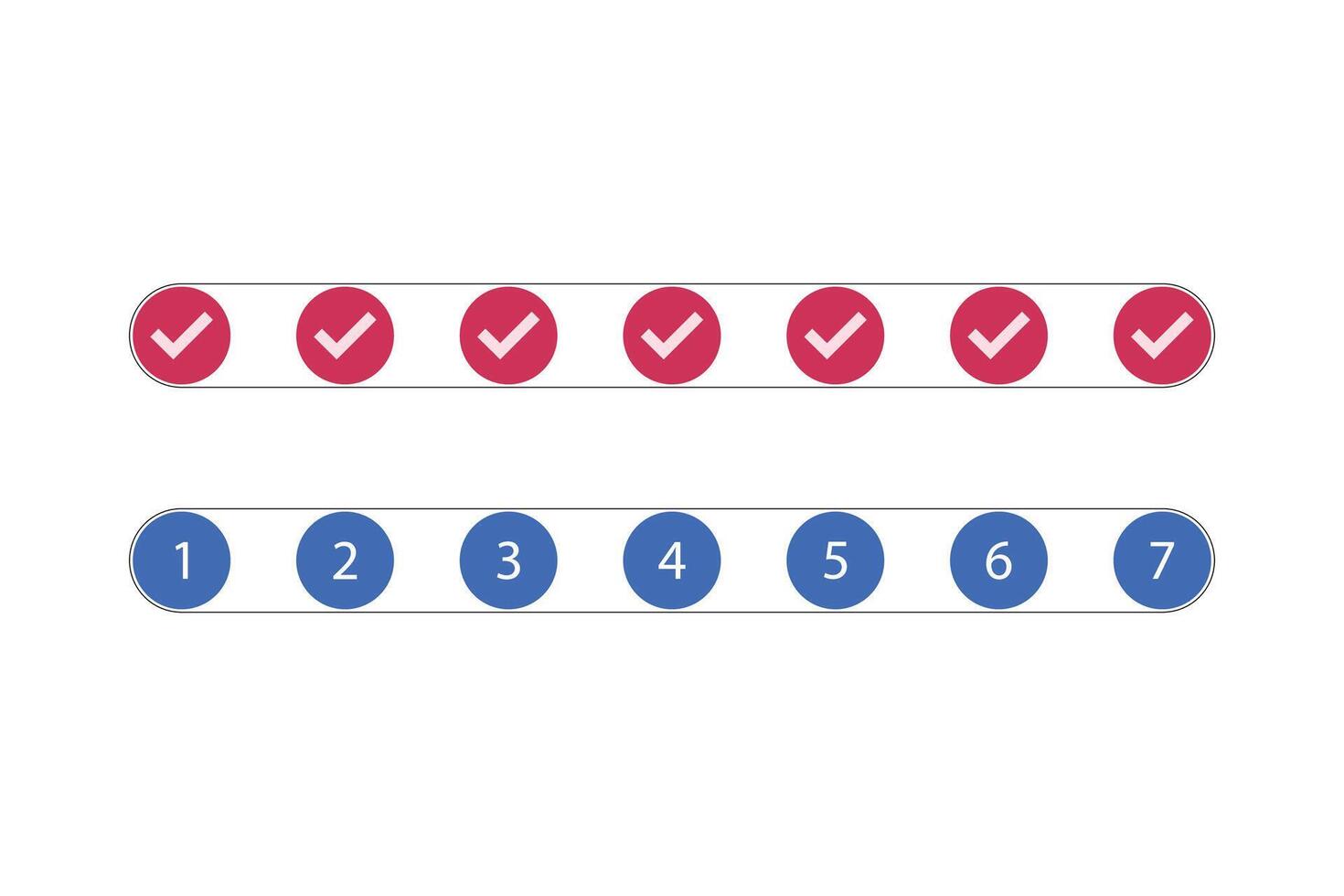 Seven Step Successful Goal Setting System Icons with Checkmarks and Numbered Buttons. vector