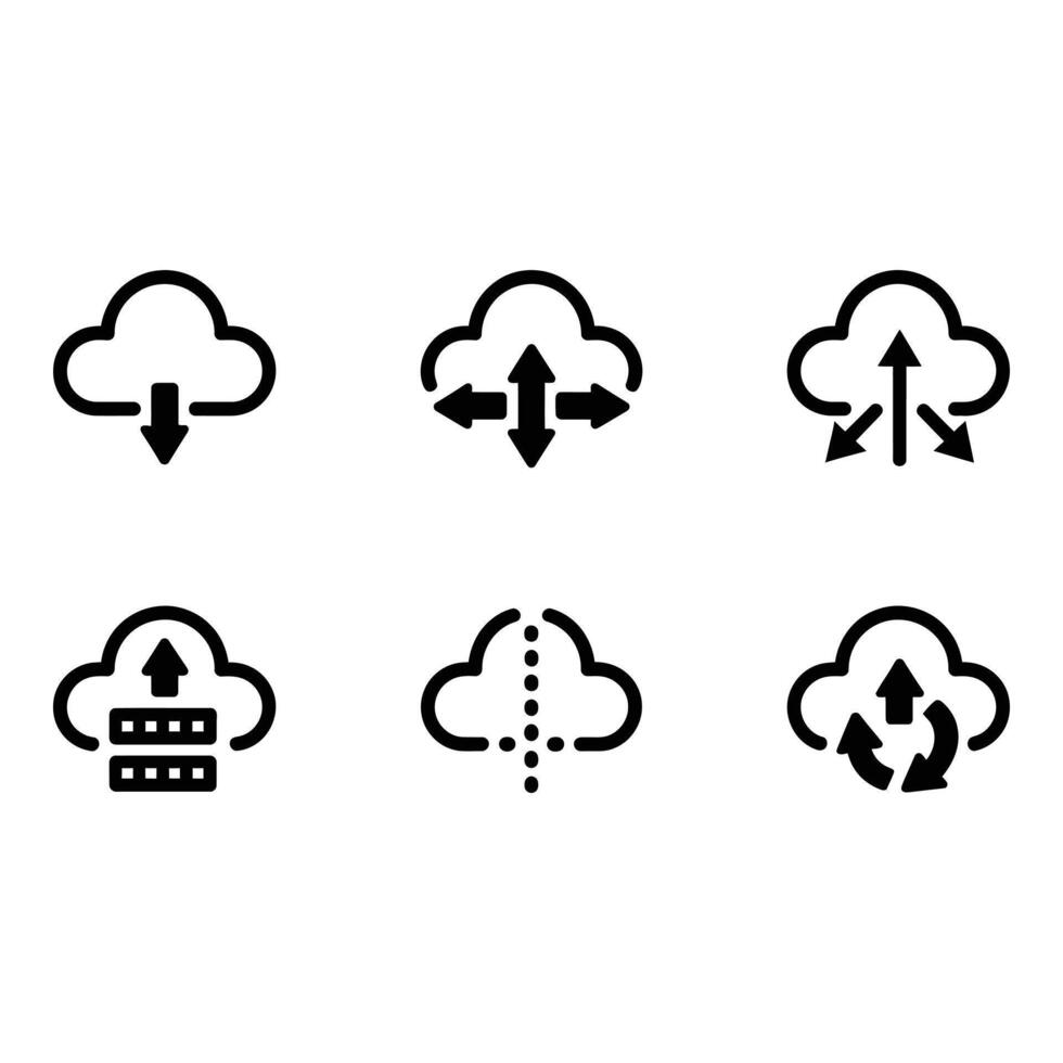 Cloud Computing Icons Download Upload Sync Share Network Data Transfer Server Minimalist Bold Black Glyph Set Pro Vector