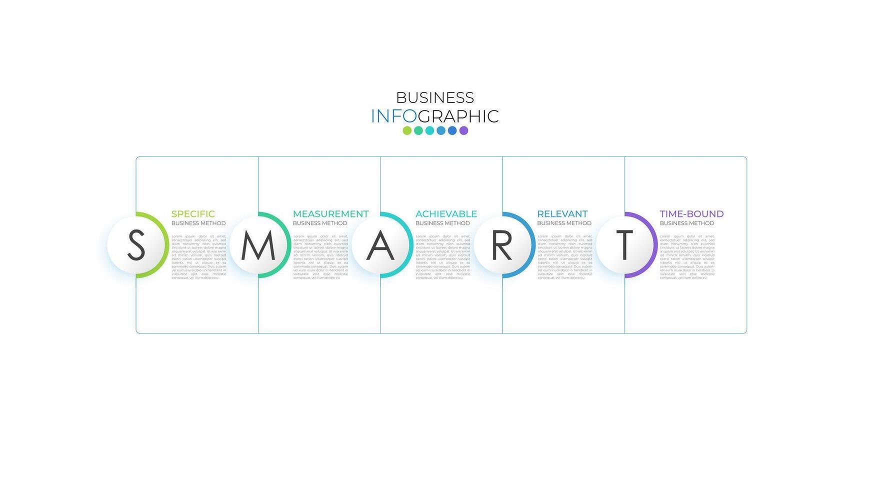 SMART Infographic design template for presentations, banners, graphics, and diagrams. Features 5 key options, parts,steps and concept in business or process planning. Pro Vector