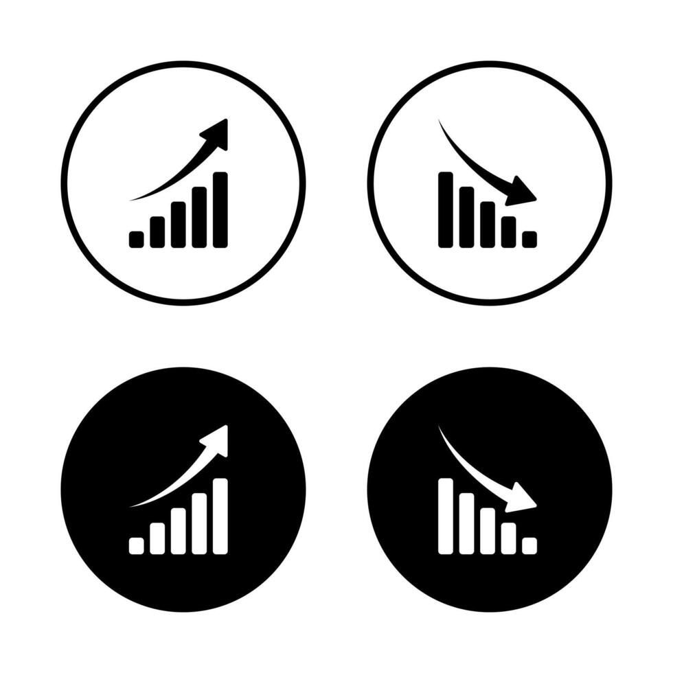 Growth and decline bar chart icon. Upward and downward arrow graph symbol. Business up and down trend concept in black circle Pro Vector