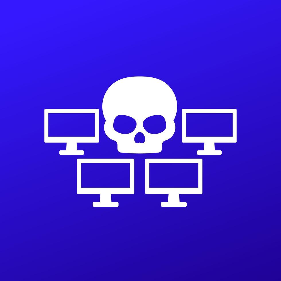 Botnet, bot attack icon, malware in the computer network Pro Vector