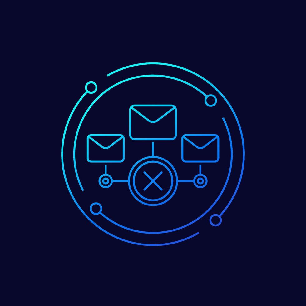delete mail, emails icon, linear design Pro Vector