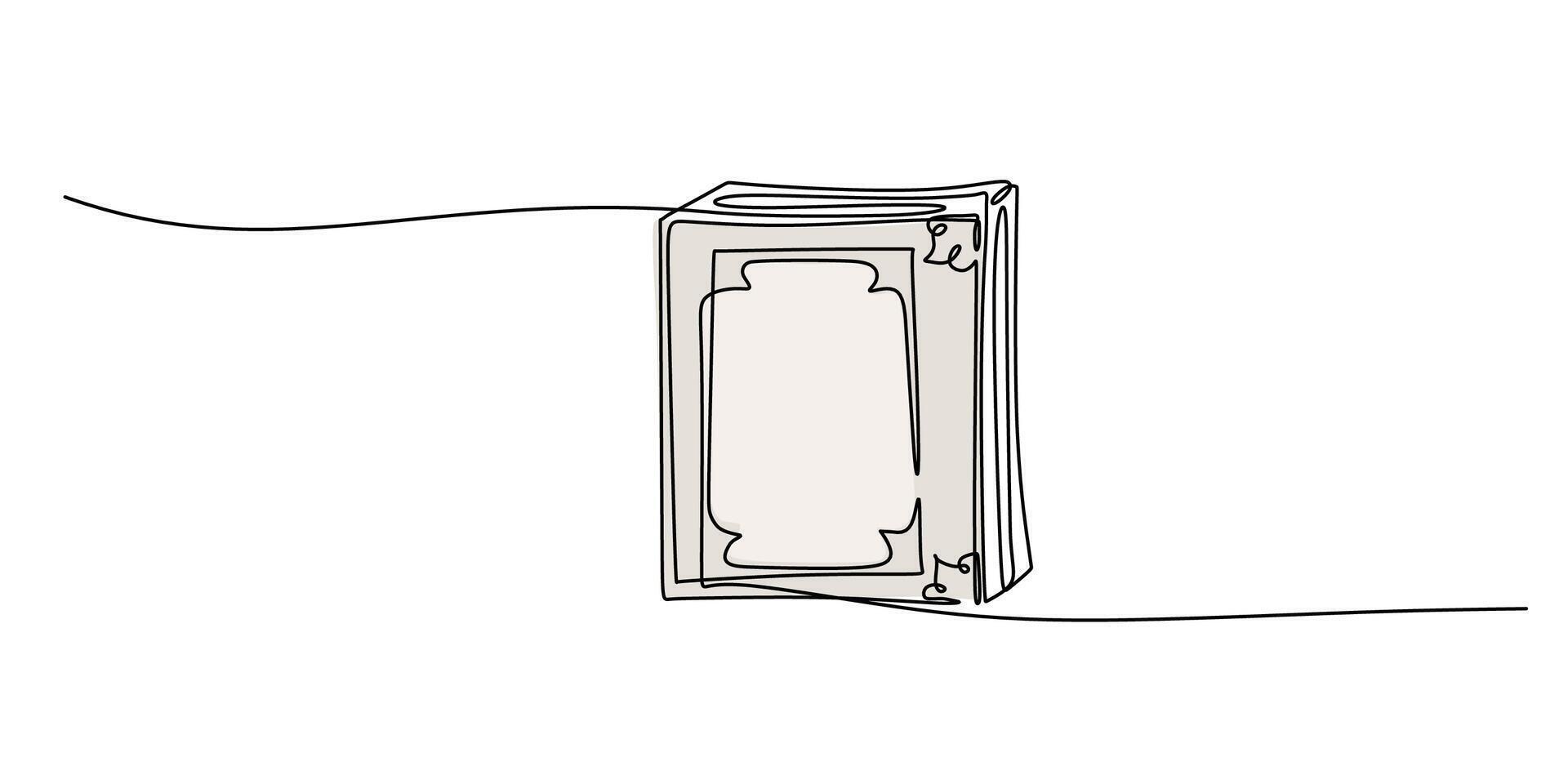 Continuous line drawing of an open book representing learning, perfect for a school's emblem or a tutoring service advertisement. Pro Vector