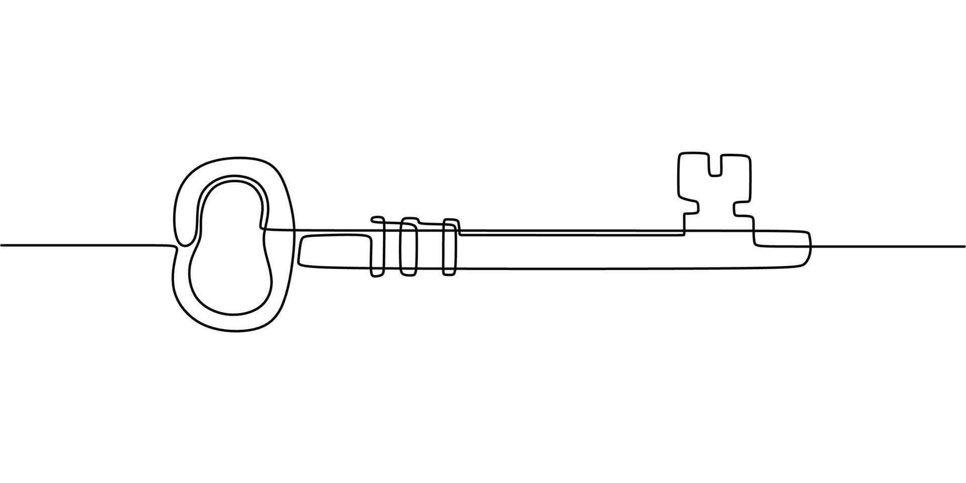 Minimalist key icon, a continuous line drawing representing access, perfect for a security company logo or a website icon. Pro Vector
