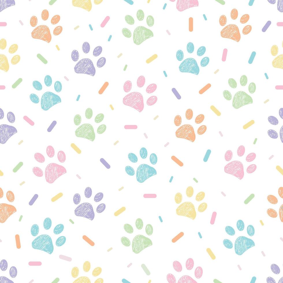Candies seamless fabric design pattern with paw prints Pro Vector