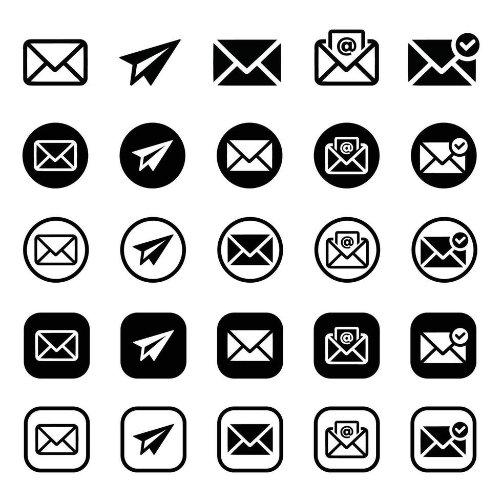 A collection of twenty email, message icons in black and white icon set on vectors Pro Vector