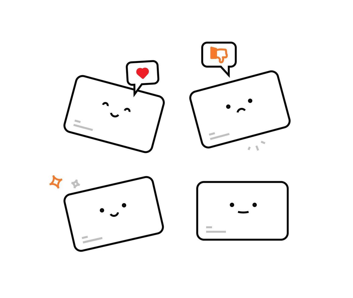 Plastic card icons. . Linear style. A set of icons for design projects. Lively and cute characters with human faces. Pro Vector