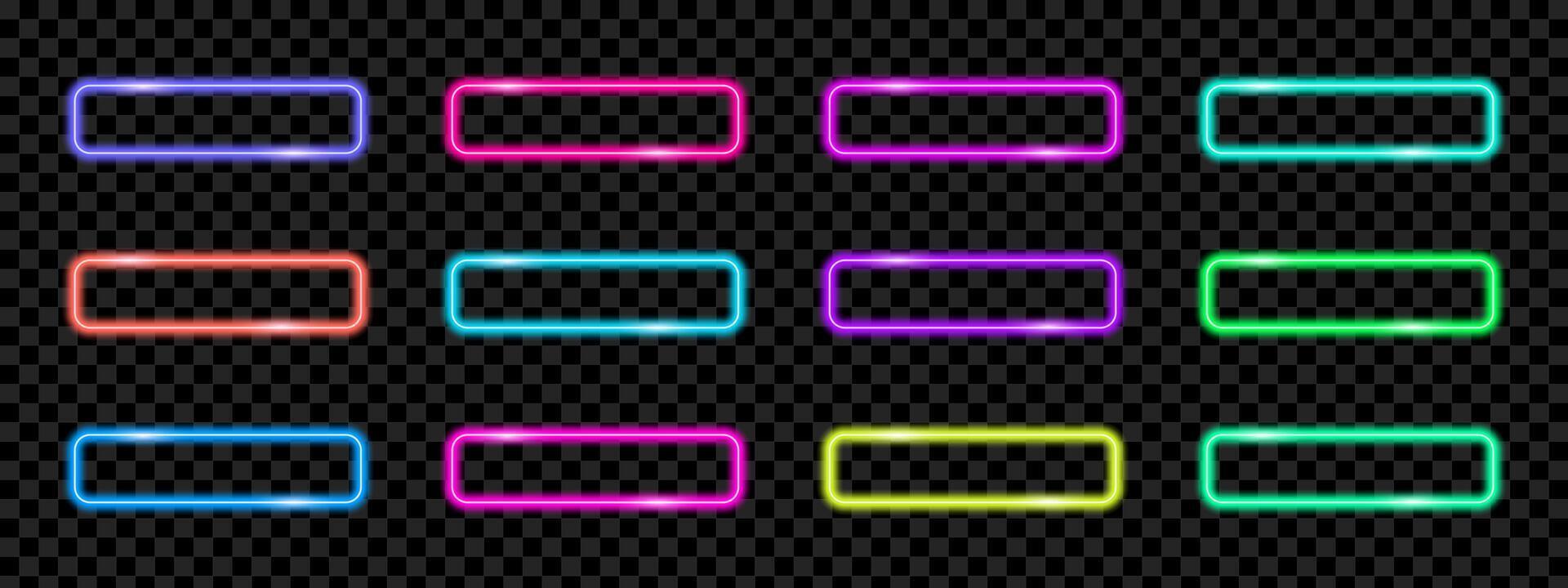 Futuristic neon rounded buttons with glowing effect. Pro Vector