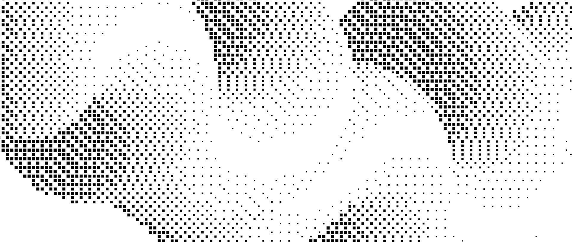 Pixelated gradient wave shape. Black dither squiggle texture background. Dotted fluid curvy form for banner, poster, leaflet. Abstract rasterized undulated overlay wallpaper. Comic backdrop Pro Vector