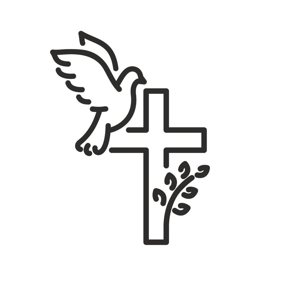 christian cross with dove icon, easter concept, thin line web symbol on white background - editable stroke illustration eps10 Pro Vector