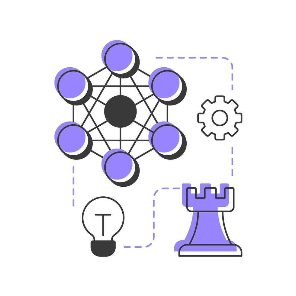 McKinsey 7S modern linear concept icon. Diagnostic framework for evaluating organization. Gap analysis tool. Flat outline elements connected with dotted lines. Creative visual. Easy to edit Pro Vector