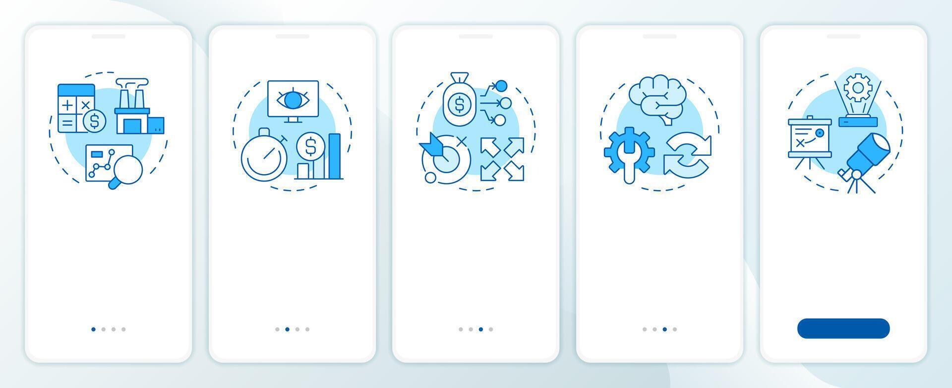 Steps in capacity management processes blue onboarding mobile app screen. Walkthrough 5 steps editable graphic instructions with linear concepts. UI, UX, GUI Pro Vector