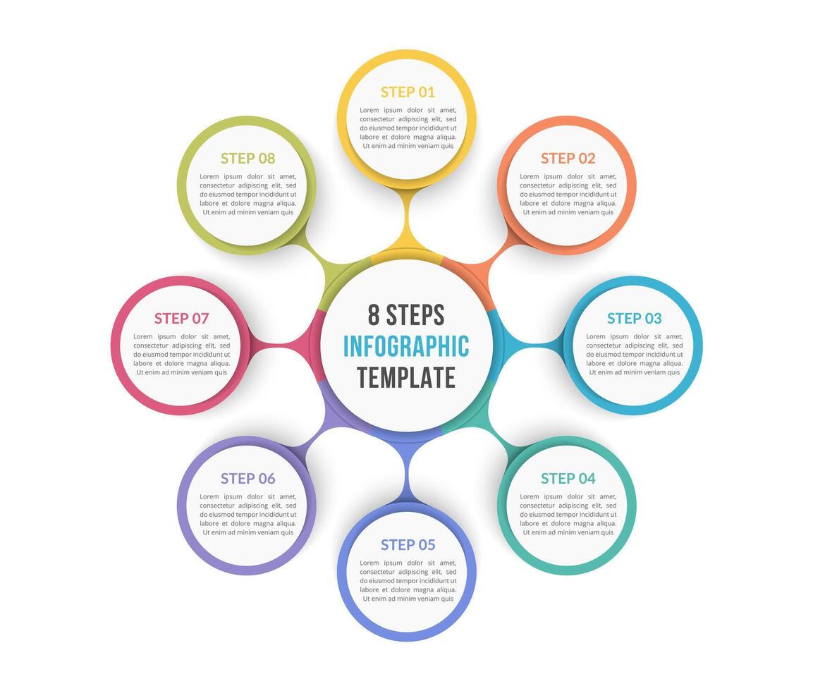 Circle diagram template with eight steps or options, process chart Pro Vector