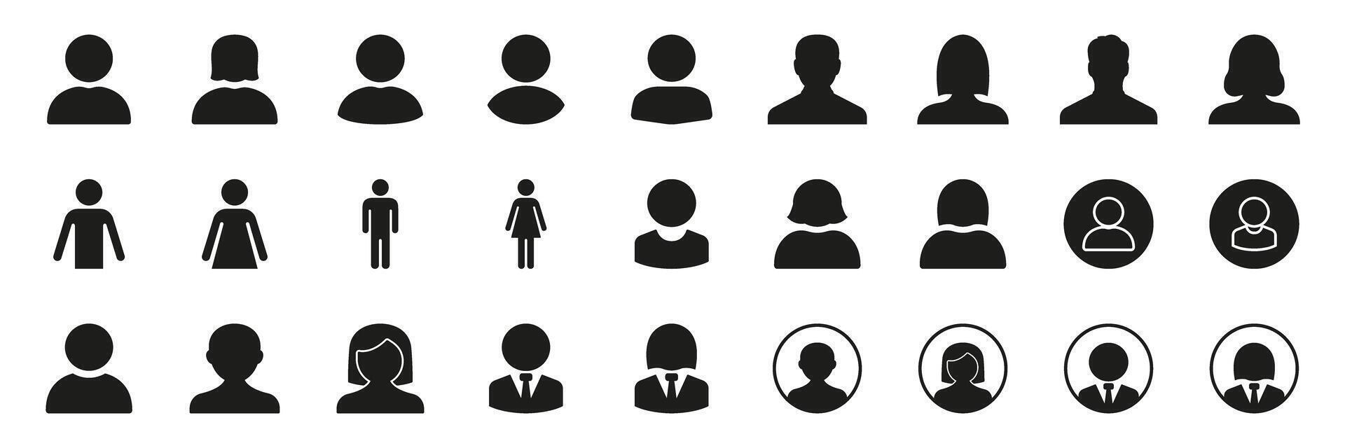 User Profile Silhouette Icon Set. Diverse User Avatars, Gender Representation, And Professional Identity Symbols Collection. Social Media, Networking and Communication. Isolated Illustration Pro Vector