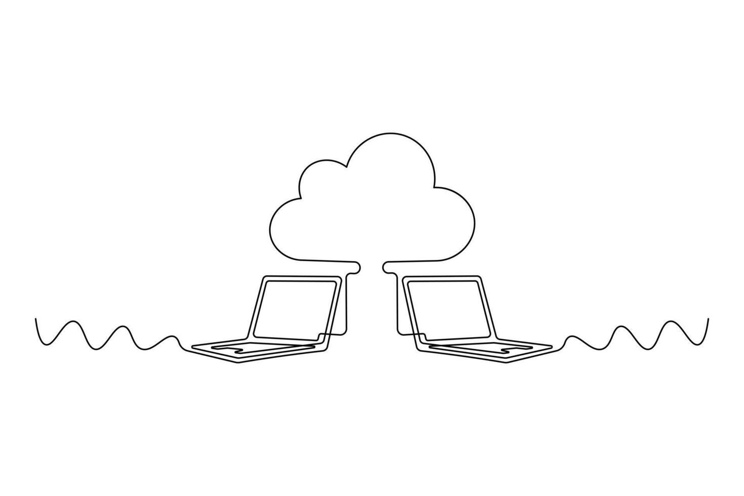 Cloud Computing Continuous Line Art Laptop and Cloud, Connection Illustration vector