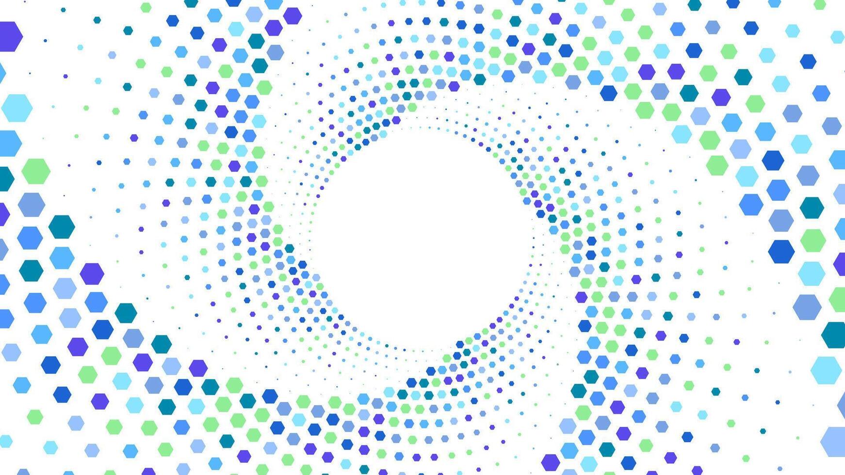 Blue and green hexagons forming a swirling spiral pattern on a white background.Abstract background. Pro Vector