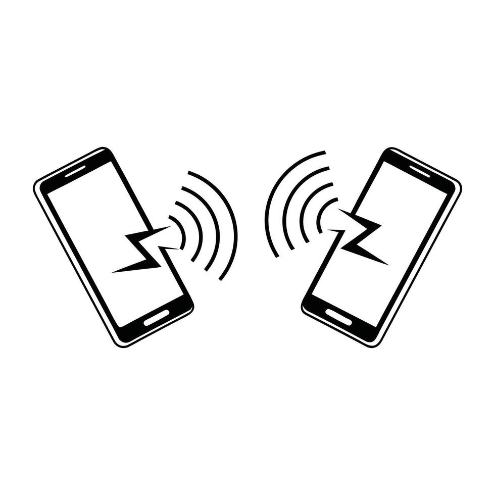 Mobile Phone Data Transfer Concept with Two Smartphones and Wireless Signal Representing Communication Connection and Technology in a Simple Black and White Illustration vector