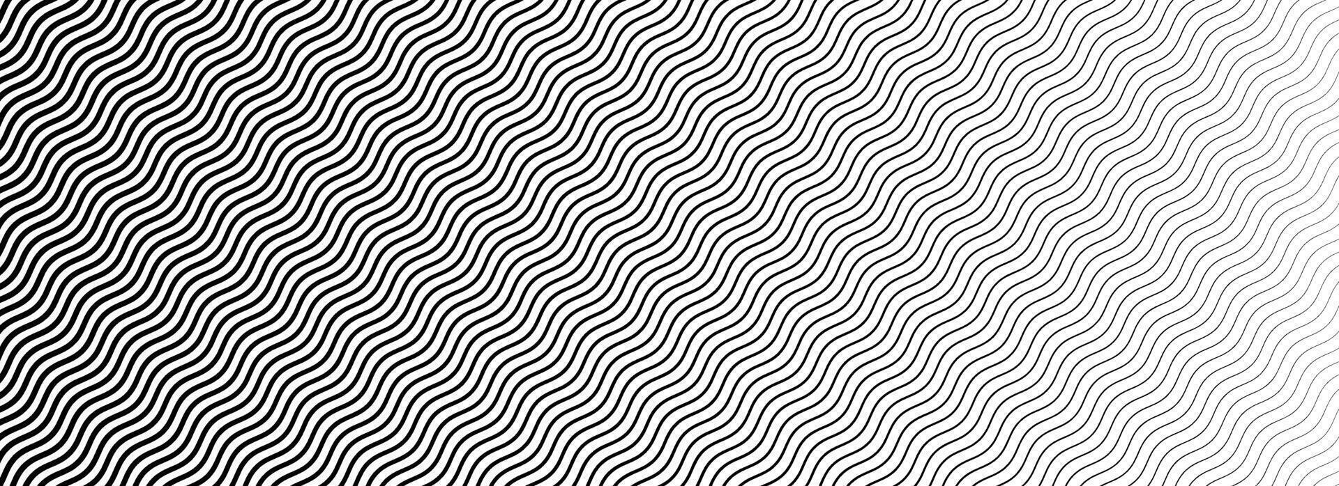 Wavy line gradient pattern. Black and white fading wave halftone gradation. Curved stripe texture wallpaper. Thin to thick zig zag strike background for overlay, print, cover, graphic design Pro Vector