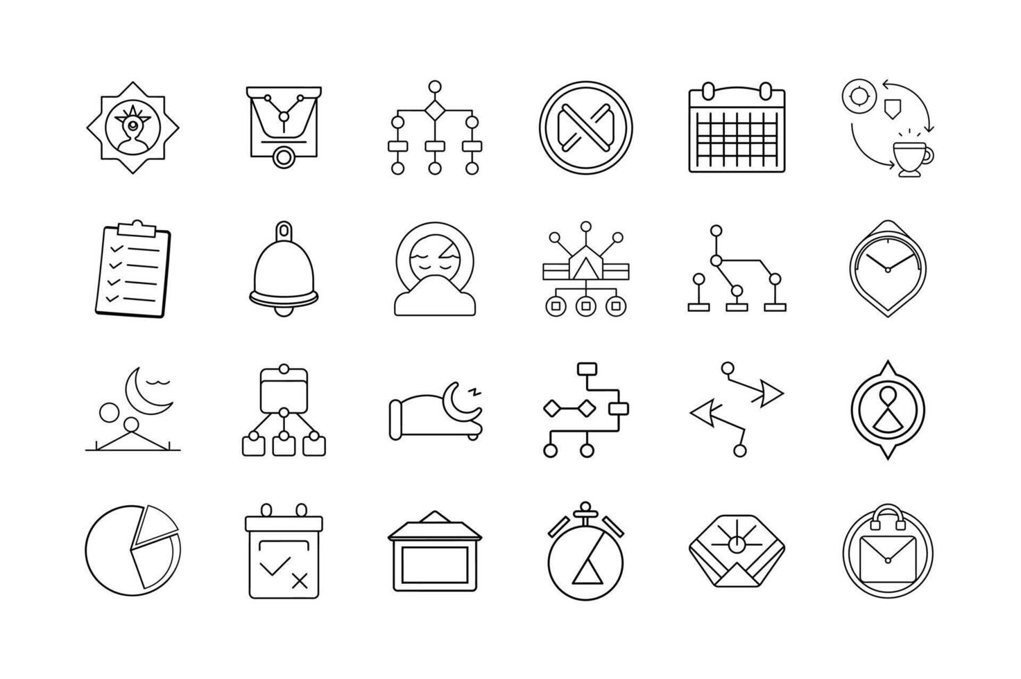Time Management and Productivity Icon Set Task Planning Workflow Organization Scheduling Tools Focus Improvement and Efficiency Symbols vector