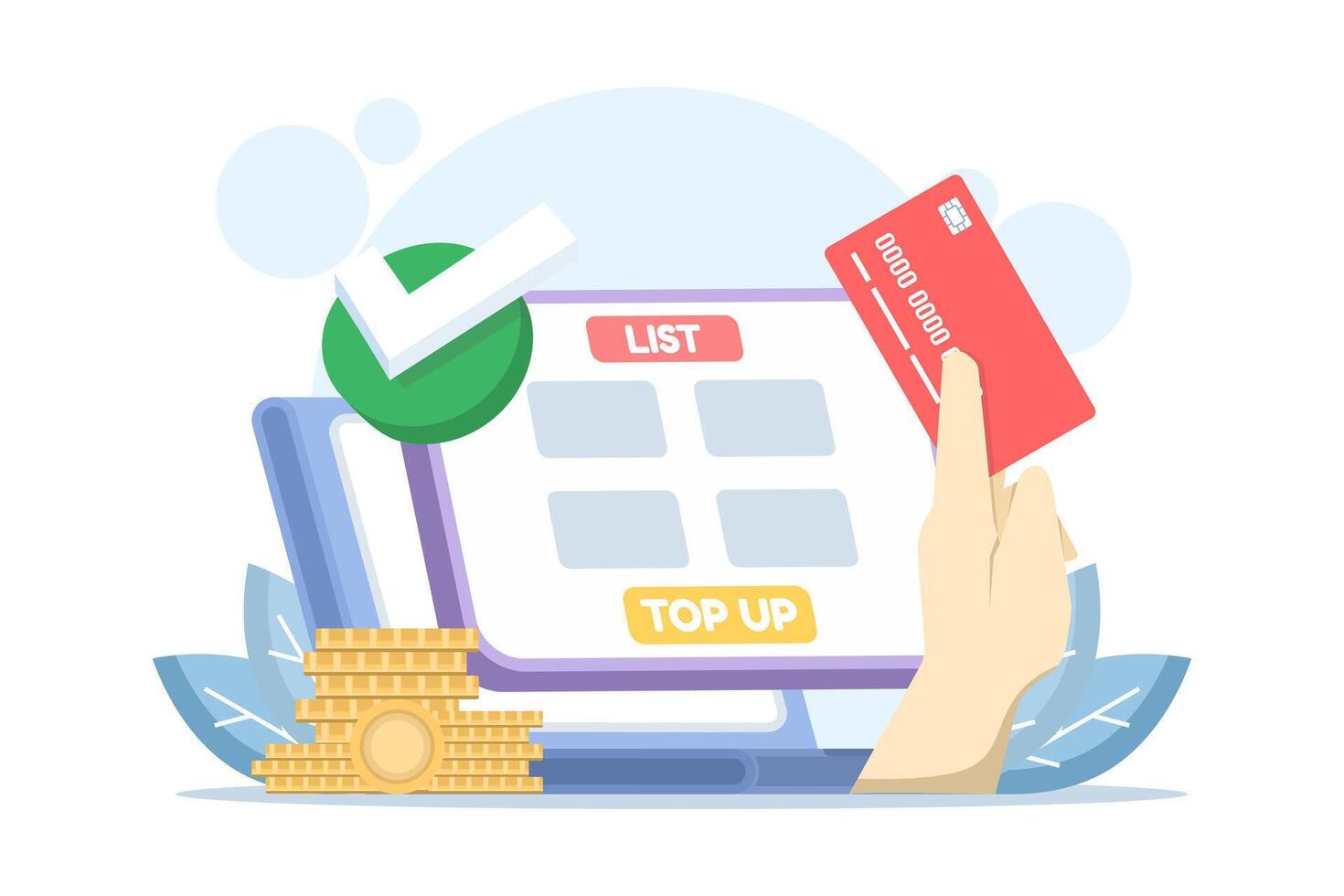 Mobile Payment and Digital Wallet Concept. Online payment transaction system. Top-up funds. Top-up or add to account balance using an app. Flat design illustration. Pro Vector