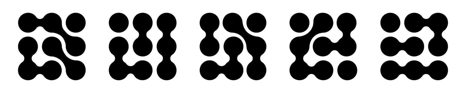 Metaballs figures. Circuit elements. Connected liquid drops, organic blobs or amorphous shapes background. Cells, neurons or molecules isolated on white background. graphic illustration Pro Vector