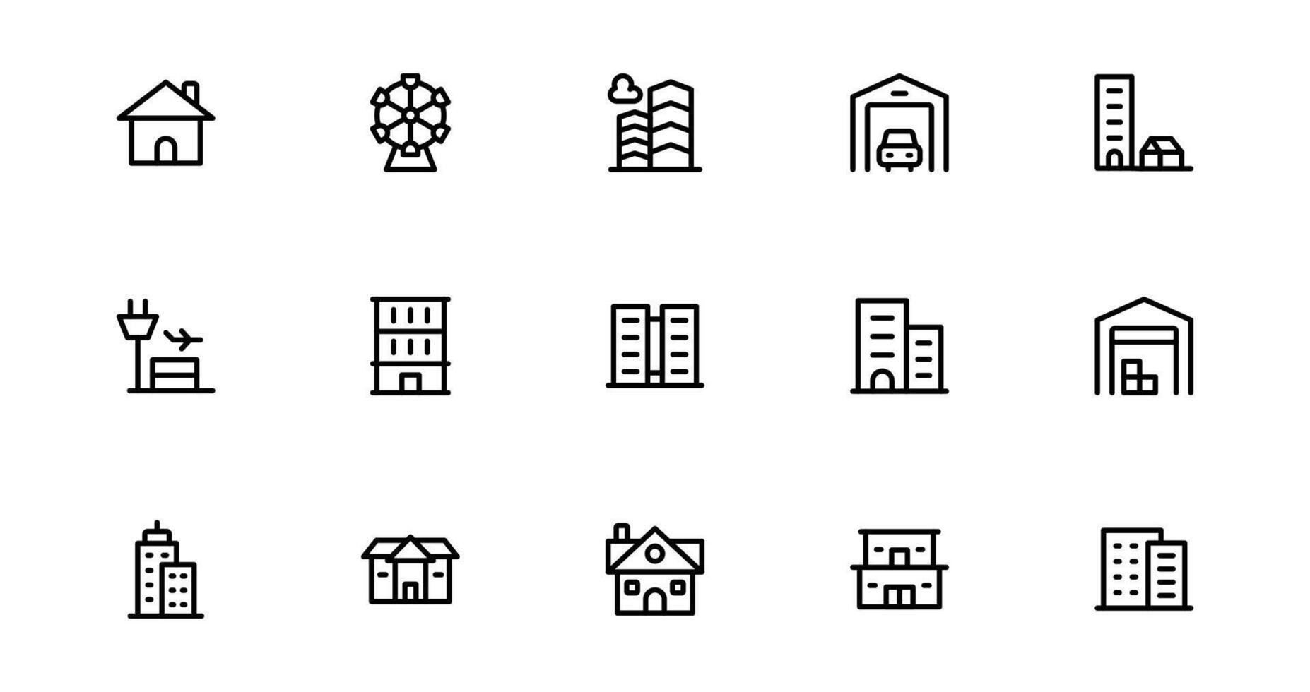 Building Icon Package set Representing Construction, Architecture, Tools, Blueprints, and Urban Development in Simple, Download-Ready Format Pro Vector