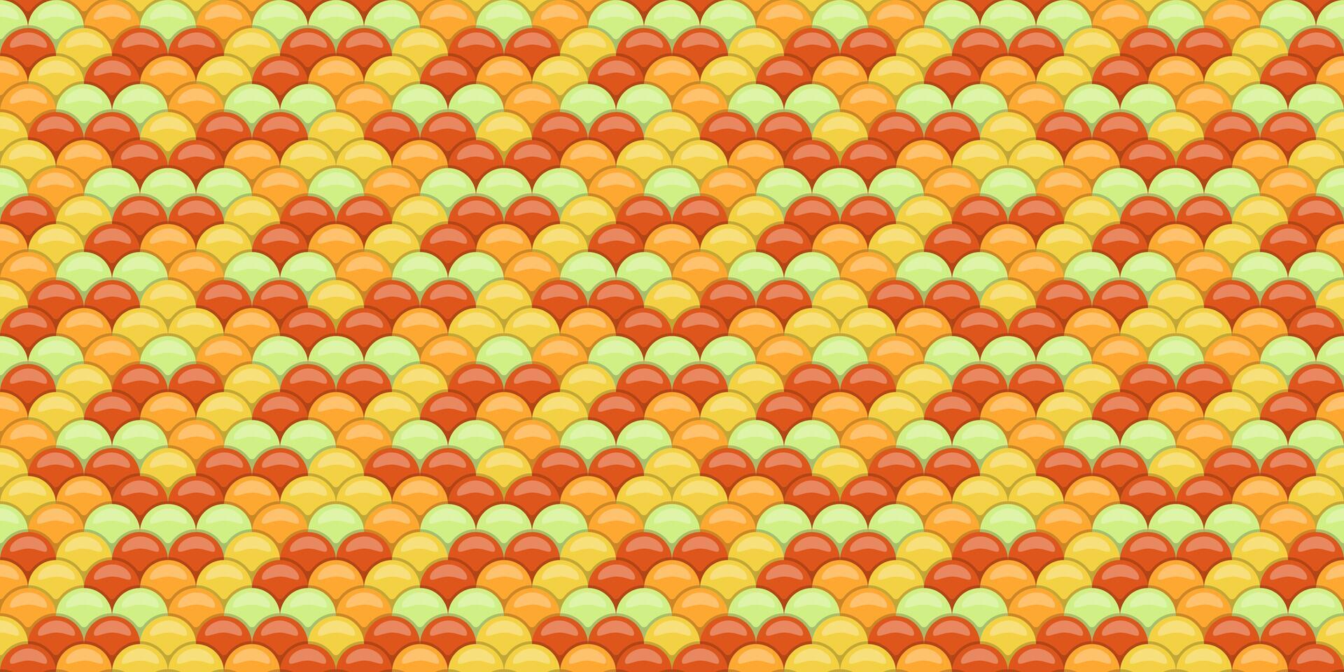 Vibrant, seamless pattern of overlapping semicircles in warm, autumnal tones. Ideal for backgrounds, textures, or website design, evoking feelings of warmth, energy, and optimism. Pro Vector