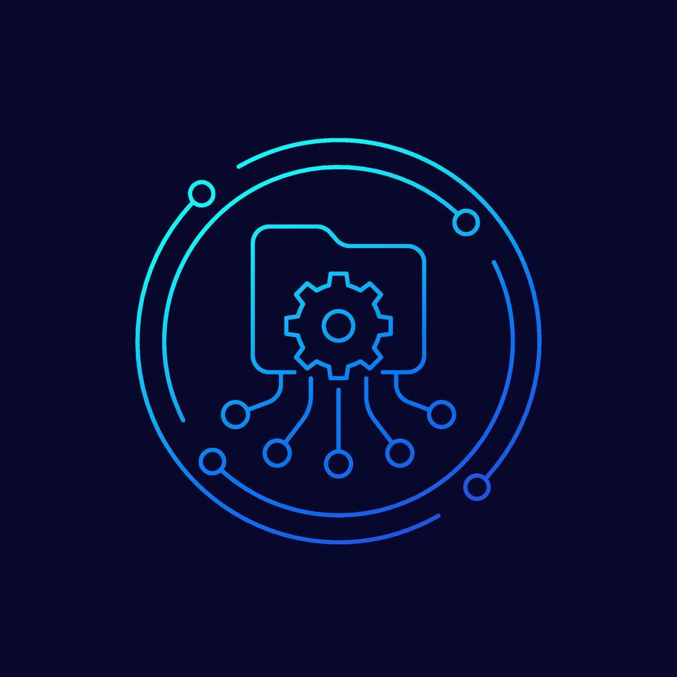 process data icon with file folder, linear design Pro Vector